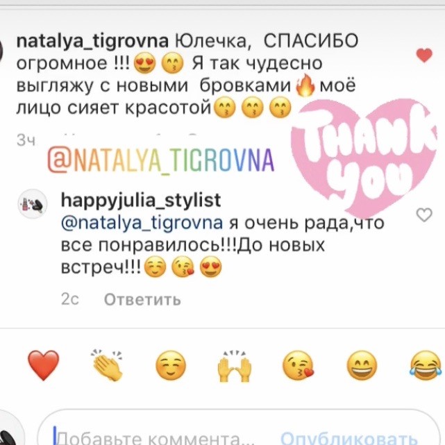 Хочу поблагодарить Вас за очень качественно-оказанную мне услугу "Коррекция бровей". Всё на высшем уровне! Быстро и качественно! Теперь только к Вам! -)